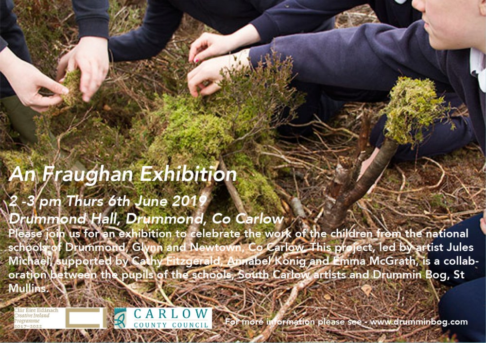 The An Fraughan project, led by artist Jules Michael, supported by Cathy Fitzgerald, Annabel Konig and Emma McGrath, is a collaboration between the pupils of the schools, South Carlow artists and Drummin Bog, St. Mullins.