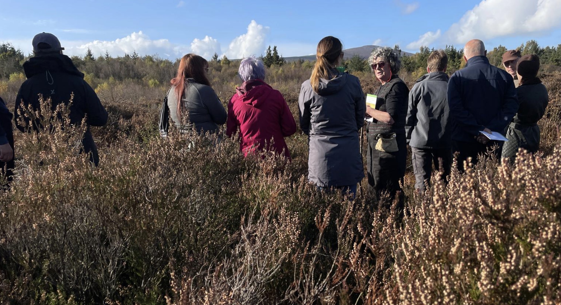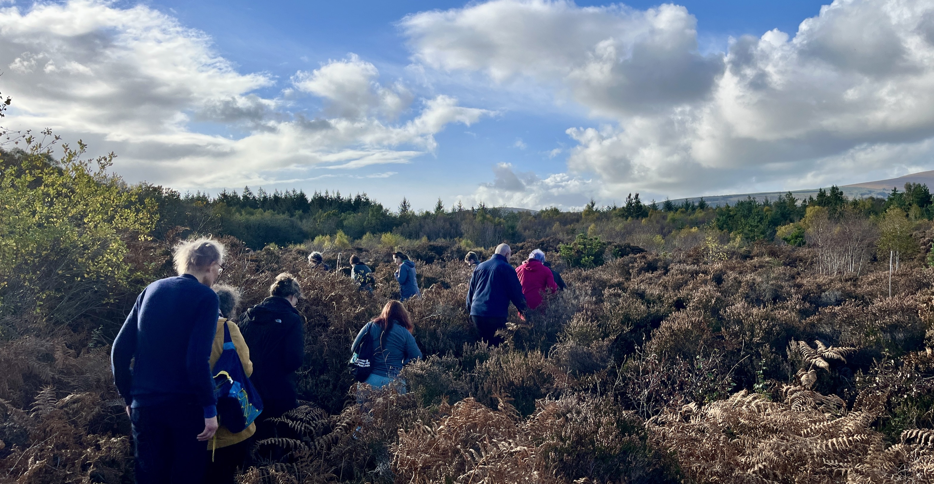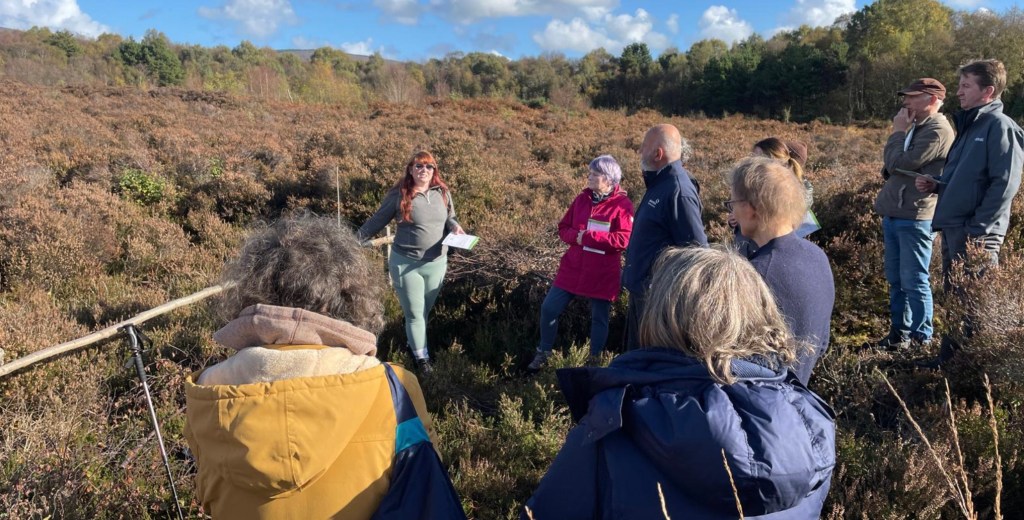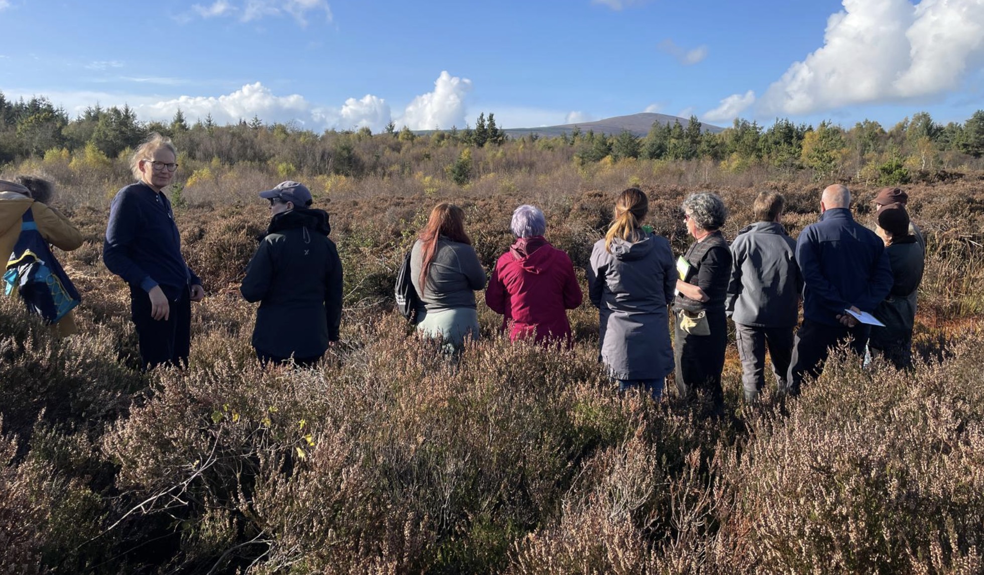 During the walk, we enjoyed a beautiful autumnal day, and Aoife Kirk (formerly with “Connecting Communities with Peatlands” led by the Community Wetlands Forum and Irish Rural Link), shared her expertise on bog formation and wetland restoration across Ireland. She also provided a very useful illustrated guide for us all, on peatland formation, flora and fauna identification. It will be very useful for future events.