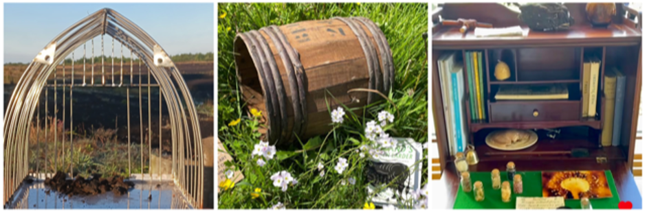 These objects and their presentations are specifically designed by each creative practitioner to create inclusive, collaborative creative activities while giving a physical indication and making real this method of working as a means to aid awareness for action to safeguard our peatlands, non-human neighbours and our surrounding communities.