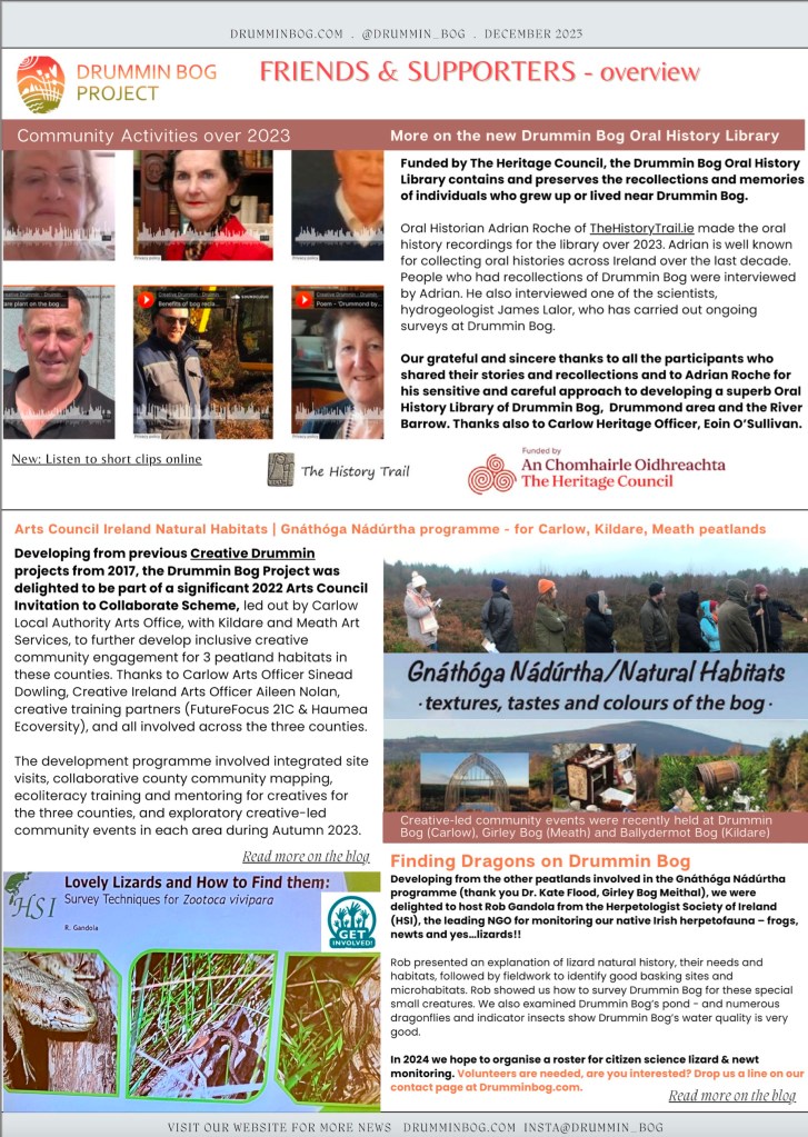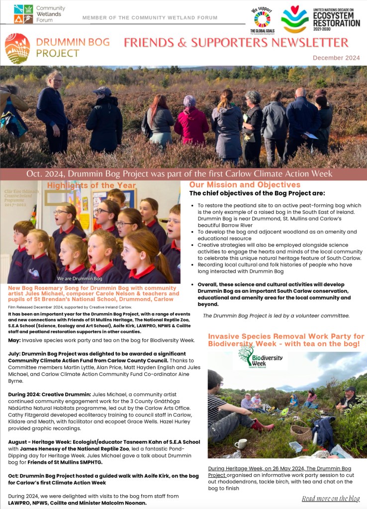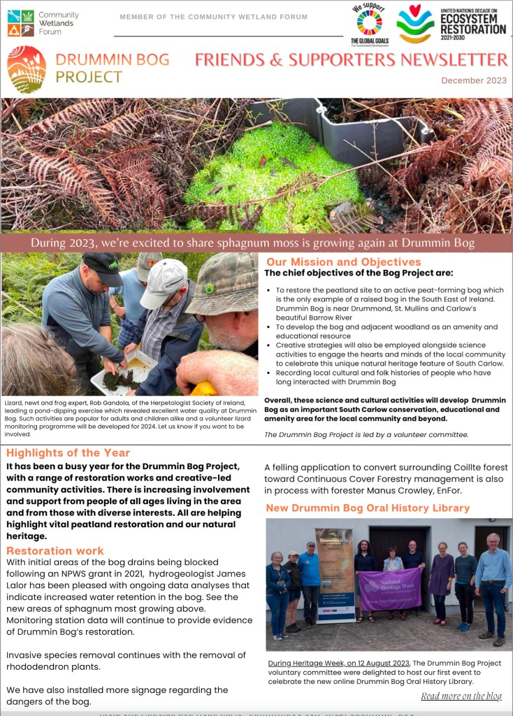 Newsletter . Celebrating Carlow's only Raised Bog Type your emailโฆ Subscribe December 2024 Newsletter 2024 Dec DB NewsletterDownload December 2023 Newsletter Download the pdf (with active weblinks) here: 2023-drummin-bog-dec-newsletter-14.12.2023cfDownload
